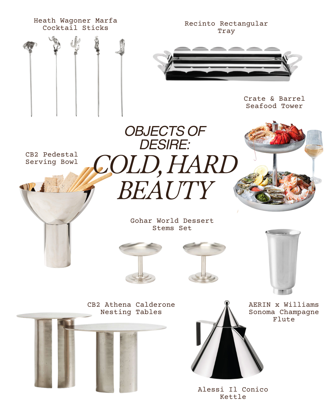 Petite pedestals with a mirrored finish so glam your pastries might develop a superiority complex. Perfect for elevating sweets—or single oysters, if you’re feeling extra.
